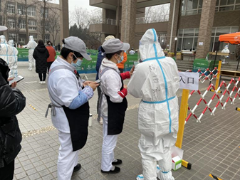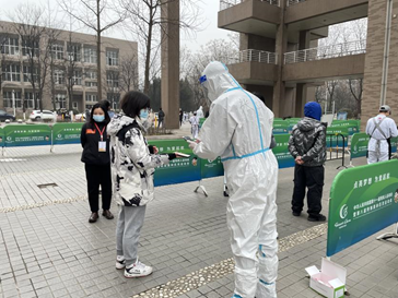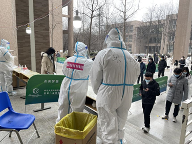在寒风中,外国语学院志愿者们辛勤工作,协助检测人员登记信息,助力全员核酸筛查工作。除核酸检测志愿者外,外院研究生也积极参与了学院党员先锋队等抗疫志愿服务工作,这些都无不展现外院人的风采,体现新时代青年的爱国与担当。