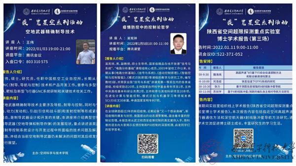 疫情期间,空间学院落实“停课不停学、停课不停研”要求,特别邀请西北工业大学、中国航空工业自控所、中国航空工业集团有限公司成都飞机设计研究所等协作单位的校外专家和学院教师、博士生等联合开展“疫”览星空系列线上学术报告会共10余期,结合不同的学科特色和疫情防控热点,分享前沿领域研究成果,启迪师生研究探索方向,带来了一场场学术盛宴。