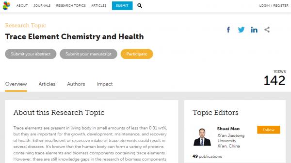 ר¿¯ÍøÖ·£ºhttps://www.frontiersin.org/research-topics/31041/trace-element-chemistry-and-health