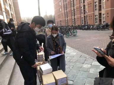 为保证线上教学学生对纸质教材的需要,居住南校区的郭宇辉、罗佳胤两位老师全力以赴提前准备安排。在接到本科生院教务处可以为学生发放现有的纸质教材的通知后,校教材中心连夜制定了周六、周天为学生发书的计划。