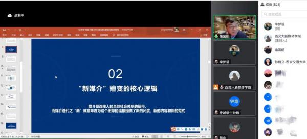 1月19日,北京师范大学新闻传播学院学术委员会主任喻国明教授带来“元宇宙”视域下媒介形态的进化逻辑与社会重构首场主题讲座,探讨“元宇宙”对传播与社会的深刻解构所带来的一系列改变,以及对于传播学学科重构的关键性影响,来自西安交大及其他高校、科研院所、媒体等600余名师生及从业者在线参加学术报告会。本次讲座由孙鹤立副院长主持。