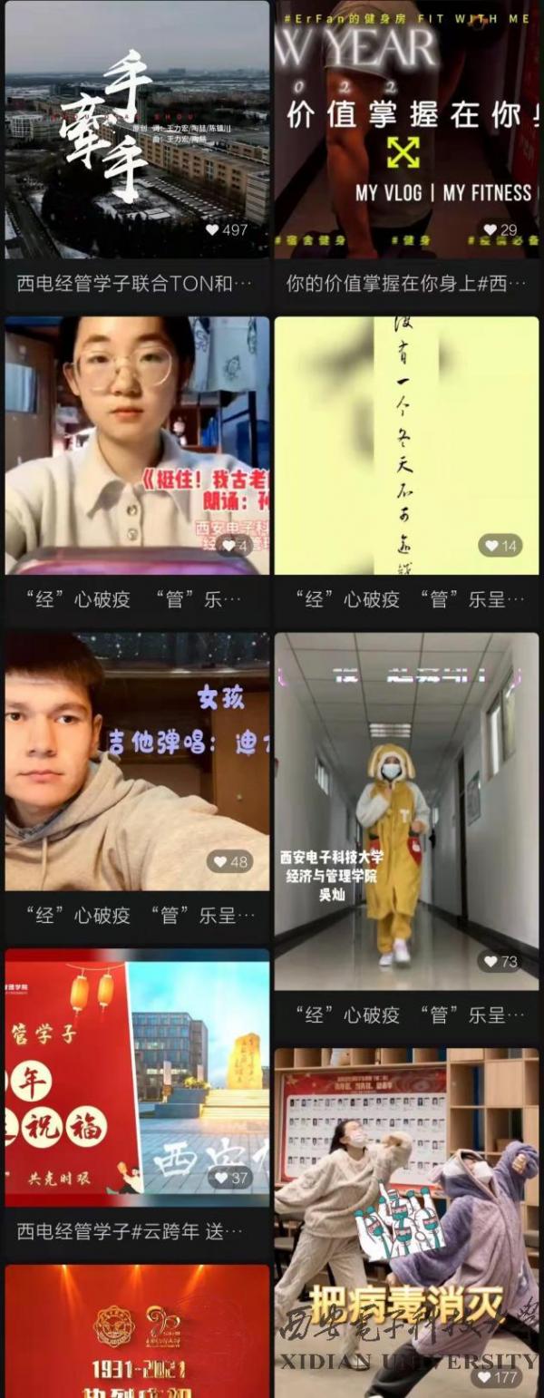 紧张严峻的防疫之外,许多经管学子还发挥文艺特长,为这场艰难的战役打气助威。2018级本科生谢湘媛、李乐莎,2019级本科生吴灿把热情与乐观带到战“疫”舞动中,将防护要求融入到舞步中,带领同学们宅寝不忘加强锻炼。迪力夏提、李明乾、孙童、依尔番·吾斯曼等同学展示个人才艺,让“‘经’心破疫‘管’乐呈新”主题战疫活动丰富而有趣,为一线防疫持续注入正能量。杨皓文、项虹桥、毛晓洁、赵烨等经管学子联合TON和校园歌手唱响《手牵手》,为同心抗疫、共克时艰注入阵阵暖流。