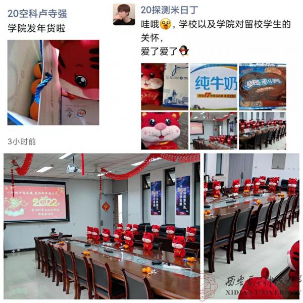 学院高度重视留校学生工作,统筹部署、精心组织,开展新春茶话会、新春大礼包、新春送祝福等活动,以真心温暖人心,以服务陪伴学生,让全体留校学生度过一个祥和、充实、难忘的寒假。