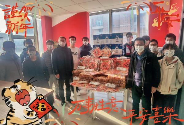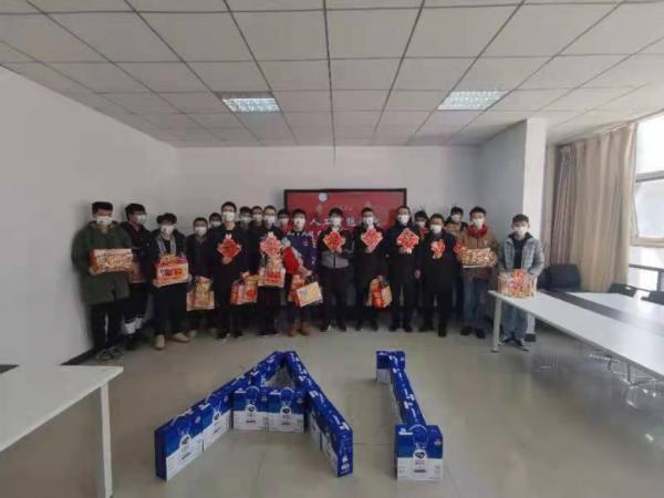 2019级硕士郝泽华同学,由于身处研三、科研需要所以选择留校过年,他表示:“今年是第一次留校过年,感谢学院贴心地为大家组织拍摄新年写真,送了年俗挂饰,拿着喜气洋洋的照片,既增添了年味,也给我们研三的最后时光留下了宝贵的回忆。“下午2点,侯彪一行来到北校区行政楼208,为留校研究生集中发放学院新春暖心物资,送上暖暖地新春祝福,并与现场同学共拍新年合影。