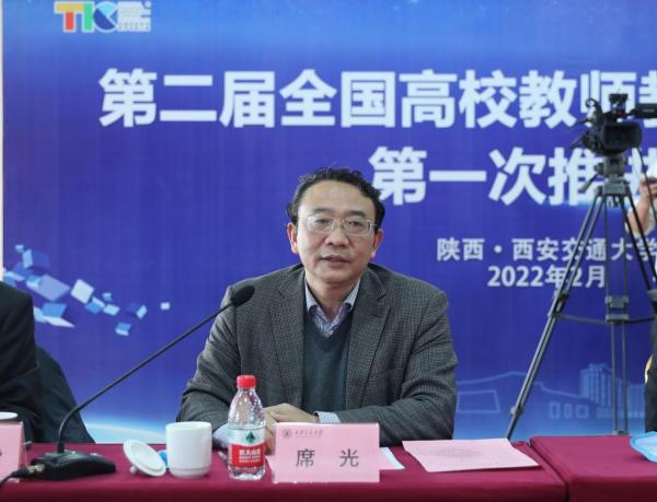 2月26日下午,第二届全国高校教师教学创新大赛第一次推进会在西安交通大学南洋大酒店召开。陕西省政府学位委员会秘书长袁宁、复旦大学副校长徐雷、西安交通大学副校长席光、陕西省教育厅高教处处长高强,以及相关省市高教处、学校教务处、教师教学发展中心负责人参会。中国高等教育学会副会长、秘书长姜恩来主持会议。