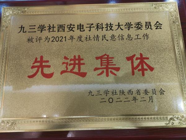 2月26日,九三学社陕西省第十三届委员会第六次全体(扩大)会议在西安召开,社中央常委、社省委主委郝跃院士参加会议并讲话。中共陕西省委统战部副部长虞浩桂莅会指导。大会表彰了2021年度社务工作先进集体和先进个人,九三学社西安电子科技大学委员会被评为“2021年度社情民意信息工作先进集体”。