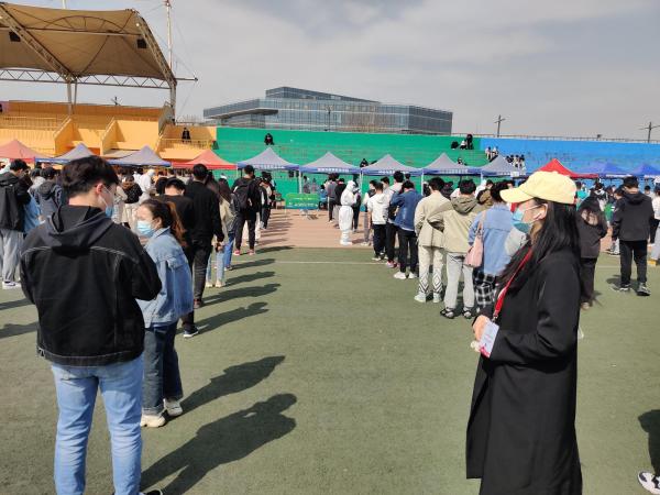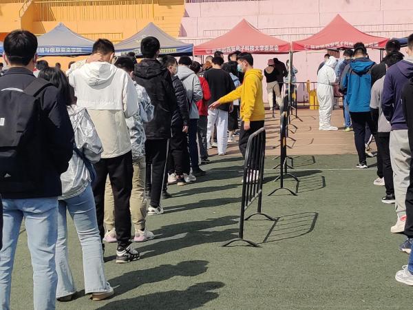 “请大家戴好口罩,保持一米的安全距离”“请提前打开西安市一码通,按秩序排队”“做完的同学请扫码登记,从两边离场”8日上午,南校区全体师生分时段、分批次,陆续进入北操场检测区域。志愿者们也分时段、分组从上午11点工作到下午4点。经过简短高效的培训后,大家服从安排、有序分工,迅速投入到自己的工作岗位,帮助医护人员维持现场秩序,监督扫码登记,提醒同学们保持间距有序排队,耐心解答各种问题,尽己所能为每一位前来检测的师生保驾护航,推动核酸检测工作更加安全、高效、有序进行。