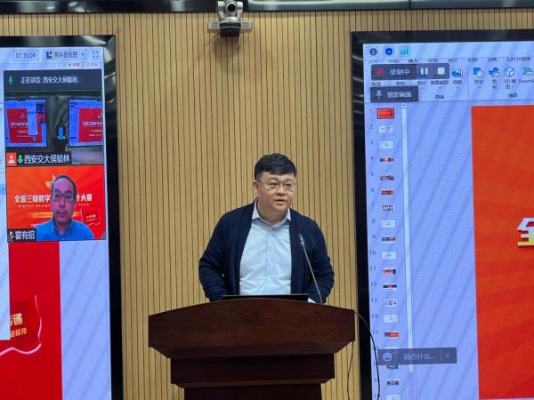 霍有朝详细介绍了大赛的背景、意义,从国赛评委的角度向在座专家、师生进行了评审要点解读,并为大家展示了历届大赛的优秀作品。