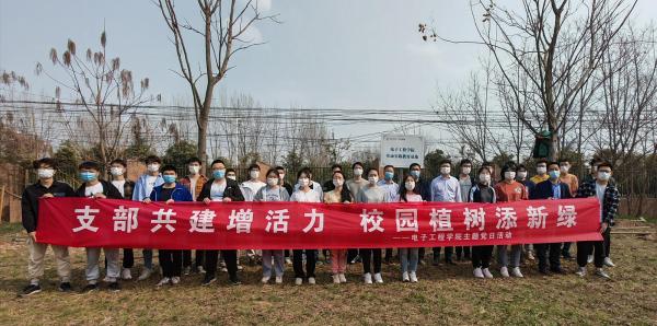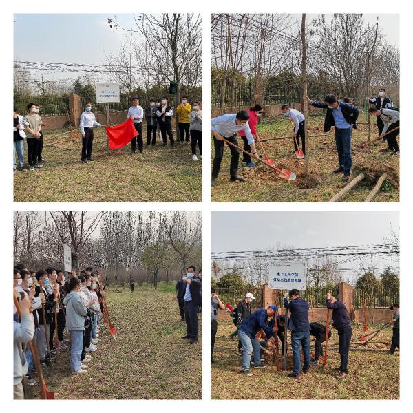 在我国第44个植树节来临之际,电子工程学院同学校后勤保障部联合共建劳动实践教育基地,组织开展“支部共建增活力、校园植树添新绿”主题党日活动暨大学生劳动教育主题实践活动。后勤党委书记李波,电子工程学院副院长(主持工作)丁金闪、党委副书记刘建锋、副院长曹静,党建与学生工作办公室主任邓鉴、团委书记杨笑宇、本科2018级辅导员和学生党员代表共同参加了本次活动。