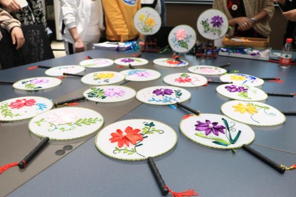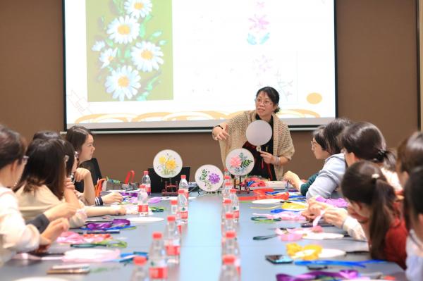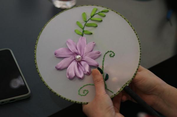 为庆祝第112个“三八”国际劳动妇女节,3月8日下午广研院工会在海丝知识中心B5栋403会议室举办丝带绣团扇美育公开课,邀请广州市美术家协会会员、黄埔区美术家协会理事、黄埔区书法家协会会员、黄埔区民间艺术家协会副主席李晓文老师,带领大家了解丝带绣的历史及发展,学习丝带绣的基础绣法,感受传统艺术的魅力。