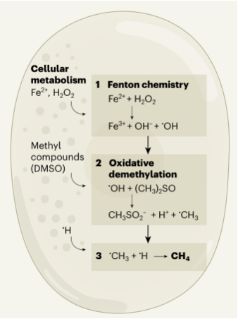 甲烷是自然界含碳量最小、含氢量最大的烃,也是最简单的有机物,其生物应用广泛。《自然》杂志于3月9日在线刊登了德国海德堡大学弗兰克·开普勒(Frank Keppler)教授团队的最新研究成果,发现所有活细胞内可能均存在一种非酶促的活性氧自由基(ROS)驱动的甲烷产生模式,此机制仅与活性氧、铁和甲基供体相关。该研究彻底颠覆了甲烷只在严格厌氧环境下由产甲烷古菌经酶促反应产生的传统认知。西安交通大学第一附属医院刘昌教授课题组张靖垚副研究员受《自然》杂志邀请,作为审稿专家,参与了该论文发表过程。