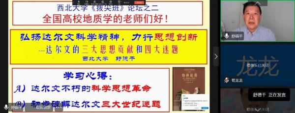 3月27日,中科院院士舒德干应“地质学拔尖学生培养模式研究虚拟教研室”邀请,为来自中国地质大学、浙江大学、西安交通大学等50多所高校的200余名师生作线上报告。校党委常委、副校长赖绍聪出席报告会。