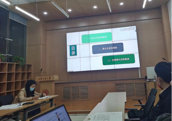 何江川以《俄乌关系的历史与现状》为题,从历史维度谈起,详细介绍乌克兰的历史沿革与发展,阐述俄罗斯和乌克兰两国之间矛盾的渊源,细致地为大家梳理了俄乌关系局势的事件脉络,客观分析了俄乌局势形成的背景原因和影响局势变化的因素。