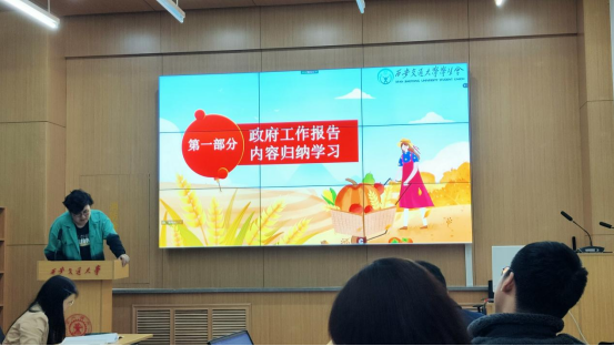 代浩宇带领大家共同学习了共青团十八届六中全会会议精神,《反对本本主义》和《关于纠正党内的错误思想》,并结合学生会工作提出相关倡议。