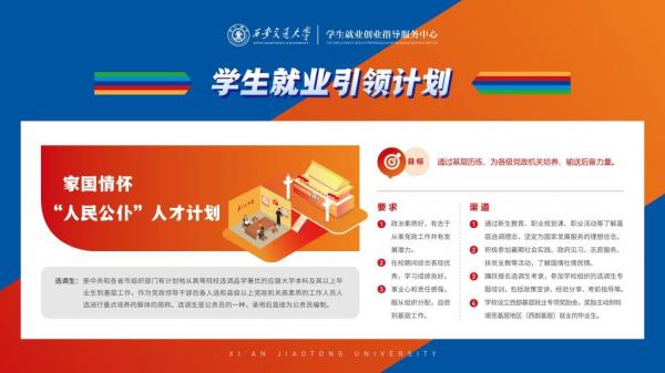 解决毕业生就业难题,除了在求职渠道的搭建端口下功夫,也需要在培养端口花力气。学校将就业指导端口前移,近年来持续实施学术创新“拔尖学者”、家国情怀“人民公仆”、科技强军“行业菁英”、全球视野“国际职员”、创新创业“企业家”人才计划等就业引领计划,从学生入校开始,就引导学生深刻理解把握时代潮流和国家需要,及早做好职业规划。