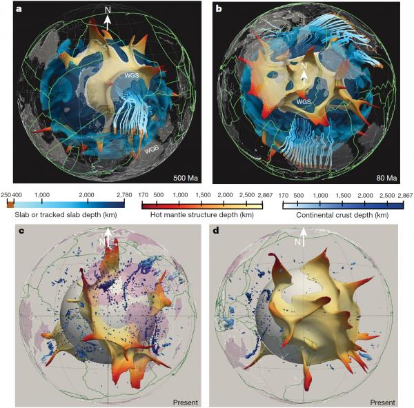 LLSVP与板块构造有着密切联系。一直以来,很多学者认为LLSVP类似于锚点,在数亿年尺度维持相对稳定并通过地幔柱源源不断地将岩浆运送到地表。而地表的板块围绕其做水平运动,并形成一系列火山岛弧。但是,我们知道构造板块和地幔柱会随着时间发生变化,也有研究表明LLSVP的形状是不断变化的。这一最新研究成果发现LLSVP的形状和位置的变化远超学者们早期的预测。实际上,LLSVP和地表的大陆、超大陆一样,会发生汇聚及裂解。这一新的LLSVP演化模型基于板块构造的重建和地幔对流的模拟。当冷的洋壳被俯冲到2000km的深部地幔后,会推动较热的LLSVP发生位置变化。该研究还发现这些LLSVP会随着时间推移汇聚形成超级LLSVP并随后裂解,与超大陆的聚合裂解类似。值得注意的是,该研究的模拟结果发现虽然LLSVP 的形状和位置会发生变化,但其活动仍然与地表火山喷发和金伯利岩形成的时间吻合,这也是LLSVP固定论观点的主要证据。最后,该研究还发现位于非洲板块底部的LLSVP在6000万年前才发生了聚合,比前人推测的时间年轻近10倍。该研究成果的发表对了解深部地幔结构的现状和演化,以及地幔对流性质的研究具有重要意义。