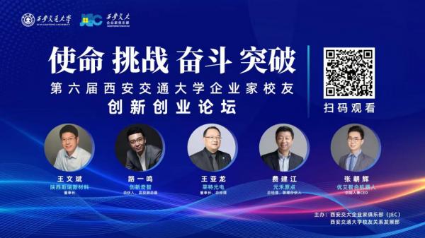 4月9日,由校友部和西安交大企业家俱乐部(JEC)联合主办的以“使命 挑战 奋斗 突破”为主题的“第六届西安交大企业家校友创新创业论坛”举行,论坛采用视频录播的形式在西安交通大学思源直播平台播出。