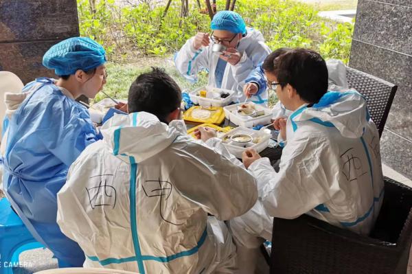 当穿上防护服那一刻,当防护服上写上“西电”字样时,常老师说一种使命感油然而生。那几天天气很热,大家的汗水一直流,衣服干了又湿、湿了又干的,“虽然身累但心却很充实,我们代表的可是从革命时代走过来的红色西电,再苦再累也要坚持,坚决完成任务。”
