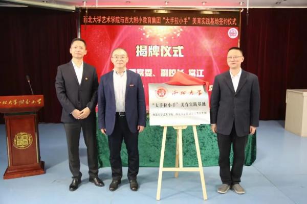 为进一步贯彻落实党中央全面加强新时代美育教育指导工作的重要论述,深化协同育人和美育育人,推进教学实习与就业实践基地建设,促进校内资源共享、优势互补,4月13日下午,我校艺术学院与附属小学教育集团“大手拉小手”美育实践基地签约仪式在西大附属小学举行。校党委副书记吕建荣,校党委常委、副校长常江出席签约仪式,学校相关职能部门、艺术学院与附属小学班子成员、师生代表参加了此次活动。仪式由附属小学相关负责人主持。