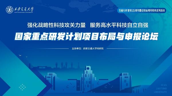 为紧扣时代脉搏,自觉履行高水平科技自立自强的使命担当,聚焦“四个面向”,强化顶层设计及相关重点领域谋划布局,提高“十四五”国家重点研发计划项目申报质量,推动“卡脖子”“补短板”等领域重大项目取得新突破,持续提升学校科技创新能力,4月14日,西安交通大学在科学馆举行以“强化战略性科技攻关力量 服务高水平科技自立自强”为主题的国家重点研发计划项目布局与申报论坛。校长王树国,科研院常务副院长黄忠德,相关职能部处代表、学院负责同志及科研骨干代表等近200人参加论坛。副校长别朝红主持论坛。