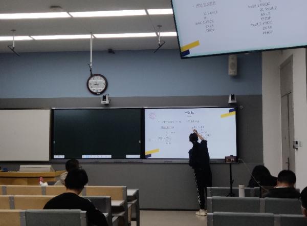 活动期间,各课程帮扶主讲的同学将书本知识进行了系统化的整理,讲解了重点例题,将自己的独到见解和学习经验分享给了同学们。4月5日,马琨同学分享了自己概率论学习中的经验。马琨从典型题目着手,在例题中为大家讲解概率论知识,并在其中穿插知识回顾,详略得当,难易结合,对整个知识体系做出相应的串联,以便于同学们能够更好的理解。4月6日,孙鹏程同学讲解了大学物理基础知识,并分享了一些做题的小技巧。4月7日,张俊涛同学向同学们进行了复变函数相关内容的分享,全面而深入地对知识点进行了梳理。4月8日,魏宁同学对电路分析基础的基础内容进行了系统的梳理,并根据学习及考核的重点,结合题目进行了细致的分析。讲解中,魏宁同学强调了基础知识的连贯性和系统性,从电路基础知识到连续复杂电路,从直流电路到交流电路,使同学们更好地理解知识,掌握做题方法。4月9日,赵春宇同学深入浅出地讲解了数电的相关知识,帮助同学们理解全书脉络,有的放矢。4月12日,赵家盼同学耐心细致的梳理了微处理器系统与应用的基本知识,通过概念和习题相结合的方式帮助同学们达到更好的复习效果。活动期间,主讲同学们认真准备,耐心细致且针对性强的讲解获得了同学们热烈的掌声。参加活动的同学们专心听讲,认真记笔记,纷纷表示学院组织学有余力的同学到身边给他们答疑解惑,增添了他们学习的信心。参与活动的志愿者们积极参与、互相协作,布置场地、引导学生签到、维持活动秩序,将一切安排得井然有序,为活动的顺利进行提供了优质服务。