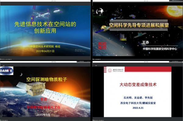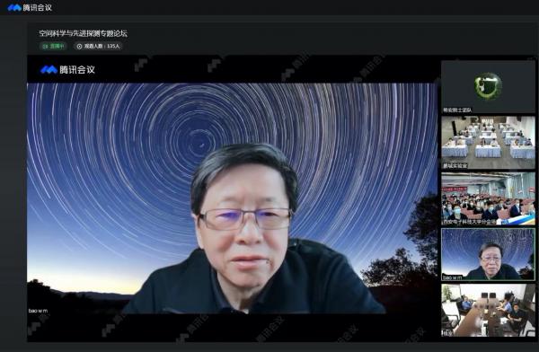 4月21日上午,在第七个“中国航天日”即将到来之际,西安电子科技大学第六届航天文化节开幕,由鹏城实验室控制与网络基础研究室主办、西安电子科技大学空间科学与技术学院承办的空间科学与先进探测技术专题论坛成功举办。中国航天科技集团有限公司科技委主任、西安电子科技大学空间科学与技术学院院长包为民院士,中国空间站系统总设计师杨宏院士,中科院国家天文台台长常进院士,中科院国家空间中心主任王赤院士,中科院国家天文台南京天文光学技术研究所崔向群院士,西安电子科技大学党委书记查显友,鹏城实验室副主任石光明教授参加论坛。还有来自中国航天科技集团、鹏城实验室、国家天文台、上海天文台、南京大学、哈尔滨工业大学、钱学森空间技术实验室以及西安电子科技大学的100余位专家学者和1000余名西电师生线上参加活动。