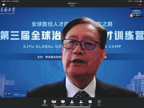 为更好服务国家发展战略,加快培养具有扎实外语基础、通晓国际规则、具有国际视野的青年人才,4月16日—17日,西安交大举办第三届全球治理青年人才训练营。西安交大常务副校长郑庆华,中国教育发展战略学会常务副会长、中国联合国教科文组织全国委员会咨询专家张双鼓,中国联合国协会常务理事、联合国国际劳工组织东亚分局前副局长王纪元,联合国教科文组织媒体发展青年专业官员孟文婷、联合国粮农组织国际顾问林润,来自西安交通大学、中国人民大学、上海交通大学、西北农林科技大学、长安大学、西安外国语大学等国内高校的150名学员以及相关负责人线上参会。西安交大学生就业创业指导服务中心主任郑旭红主持开幕式。