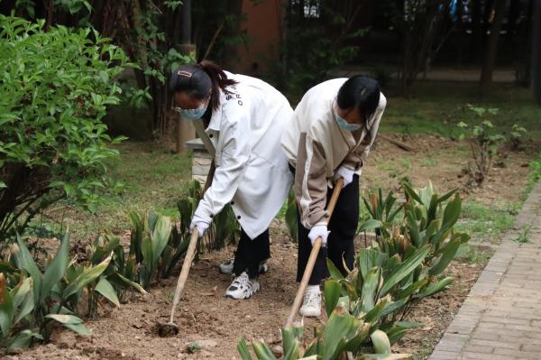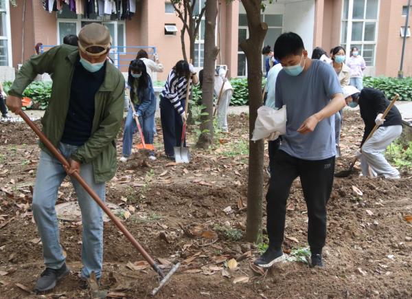 阳光正好,土地松软,正是播种的好时节。为引导同学们树立正确的劳动观念,深化热爱劳动、劳动光荣的理念,打造人人劳动的书院氛围,4月22日下午,海棠1号书院30余名学子如约来到了海棠5号楼一楼的花园参加书院劳动日活动。同学们佩戴口罩,带着手套和工具,准备在书院劳育导师曲国斌老师的指导下大展拳脚,劳育师傅们悉心地指导同学们劳动,每个人都沉浸在劳动的快乐当中。