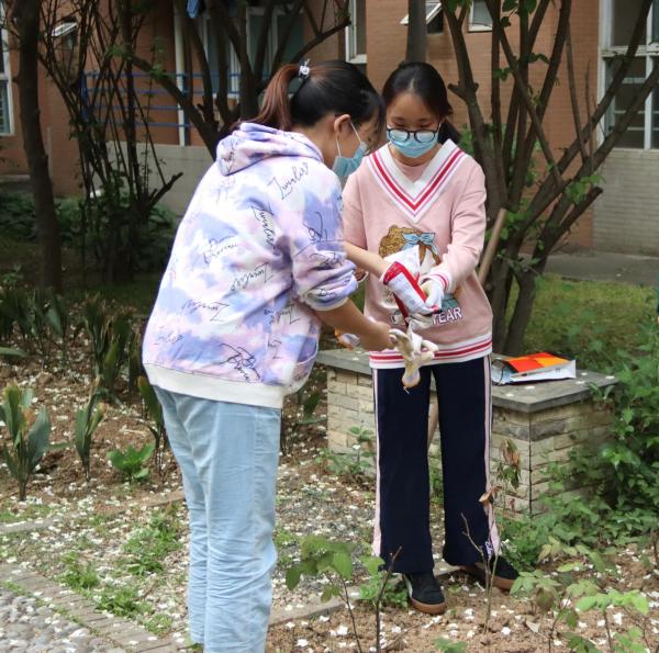 正式播种前,曲老师先向大家介绍了格桑花和向日葵的特点:格桑花耐寒、耐旱,适合在三四月份种植,极其容易存活;向日葵的生命力旺盛,种植起来很简单。随后,曲老师将同学们分为三组,四个人种植向日葵,四个人打扫卫生,其余同学则种植格桑花。分组完成后同学们都拿好自己的“武器”积极投入这一场有关花香的“战斗”。