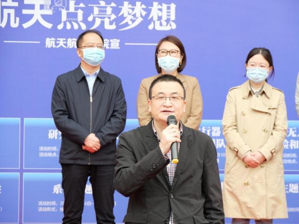 航天航空学院院长申胜平讲话,他讲到从第一颗人造卫星到去年的火星探测器成功发射,再到神州十三号成功返航,所有的“0”到“1”的成功都体现了航天人不畏艰难、敢于探索的优良传统,一代代航天人通过不断拓展认知边界,不断点亮梦想,最终实现了中国人飞天探月的梦想。航天航空学院是在传承钱学森老先生创立的第一个工程力学专业基础上发展起来的,学院依托一流力学学科来发展航天航空事业,实现了一个个的创新和突破。中国梦和航天梦的实现需要航天人和航院人的共同努力,让航天点亮梦想、让西迁精神照亮前程。
