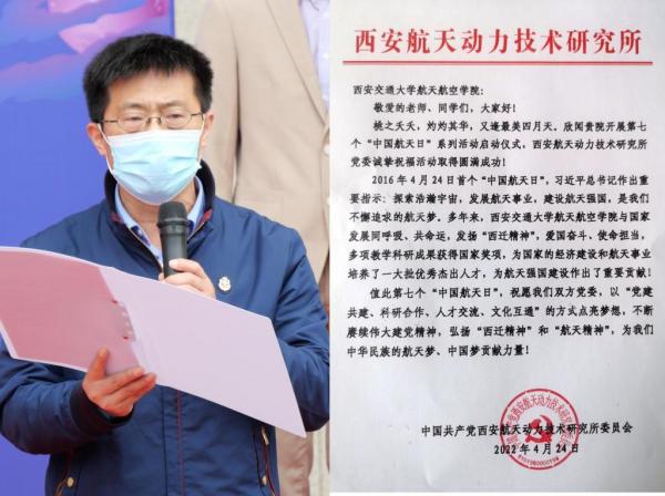 中国航天科工六院210所党委书记王栋通过视频致辞。他指出,希望能以“中国航天日”活动为契机,不断加强院所人才培养和科学研究的深度交流和合作,凝聚力量,共谋发展,谱写新篇章,共绘新蓝图,努力培养航天事业的领军人物和拔尖创新人才,为推动祖国航天事业创新发展作出新的更大贡献。