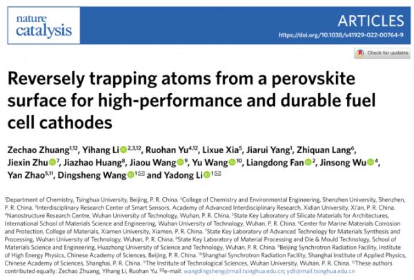 近日,学校前沿交叉研究院“智能传感前沿交叉研究中心”李一航副教授在固体氧化物燃料电池(Solid Oxide Fuel Cells, SOFCs)阴极材料方面取得突破性进展,研究成果以《Reversely trapping atoms from a perovskite surface for high-performance and durable fuel cell cathodes》为题发表在Nature Catalysis 2022 (IF=41.8,DOI: 10.1038/s41929-022-00764-9)上,清华大学化学系庄泽超博士、武汉理工大学纳微结构研究中心余若瀚博士为论文的共同第一作者,清华大学化学系李亚栋院士和王定胜副教授为论文的共同通讯作者。