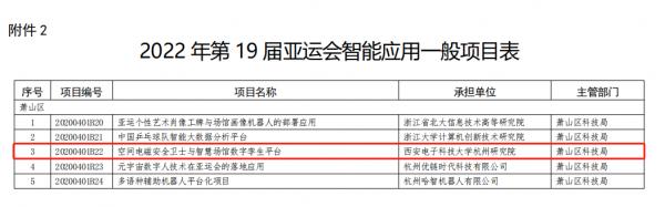 近日,杭州市科学技术局发布杭州2022年第19届亚运会智能应用项目名单,经过层层选拔入选,西电杭州研究院《空间电磁安全卫士与智慧场馆数字孪生平台》项目榜上有名。