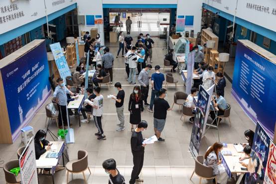 栽下梧桐树,引得凤凰来。为全力稳就业,促就业,4月27日上午,通信工程学院组织开展了2022年春季学院专场双选会。本次双选会邀请到中兴通讯股份有限公司、中国联通西安研究院等19家行业优秀企业。为方便学生,双选会在海棠8号楼2层大厅举办,企业送岗位进宿舍,学生足不出楼即可斩获优质offer。学校与学院对本次双选会高度重视,党委学生工作部部长林波,通信工程学院执行院长李云松及党委副书记沈强在活动现场与企业负责人和洽谈学生亲切交流。