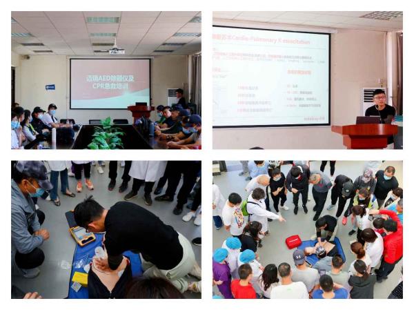 孙泽老师首先用PPT展示讲解了如何把握CPR黄金6分钟,为有需要的人及时有效地实施CPR急救,大大提高抢救成功率,并在实践环节再现了讲座中现场急救的步骤和注意事项。教师们在医护人员的指导下分组进行心肺复苏和除颤仪操作练习,气氛紧张有序。