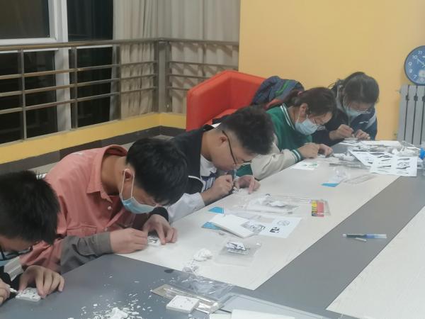 活动伊始,主讲人蒋梦轩向同学们展示了篆刻的橡皮章成品,精巧的作品一下子吸引了同学们的注意,点燃了同学们的兴趣。分享完自己的作品后,蒋梦轩向同学们介绍了橡皮砖、雕刻刀、转印水、素材纸等制作橡皮章所需要的基本工具,并细致地讲解了橡皮章篆刻的过程:从挑选图纸、转印图案到进行篆刻,从构思到动手实践,从初步的想法到创作出带有自己印迹的独特作品……接下来,在蒋梦轩同学的指导下,每位同学纷纷开始自己动手制作橡皮章,切身体会到了手工制作带来的无限乐趣。