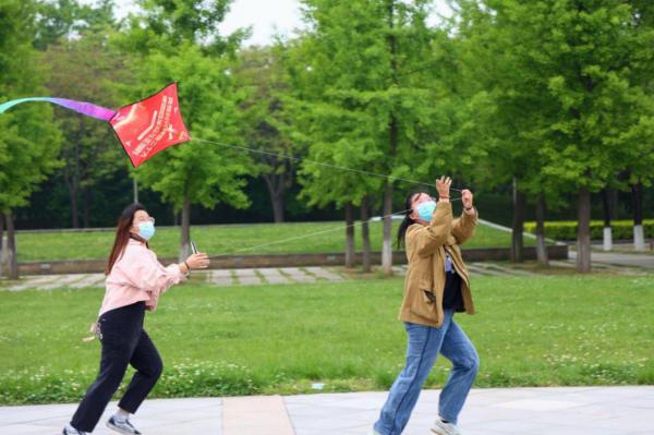 劲力东风放纸鸢,白云扶拥上蓝天。五彩纷呈的风筝于空中共同起舞,在同学们的欢声笑语中渐渐飞上蓝天。同学们在体验放风筝的同时,心中的理想也随着展翅的风筝翱翔于天空,伴随和煦的春风飞向远方。海阔凭鱼跃,天高任鸟飞,外国语学院的杜云珠同学表示:“我们这一代青年,一定会在更宽广的舞台上,展现自身价值,为实现中华民族的伟大复兴贡献力量!”