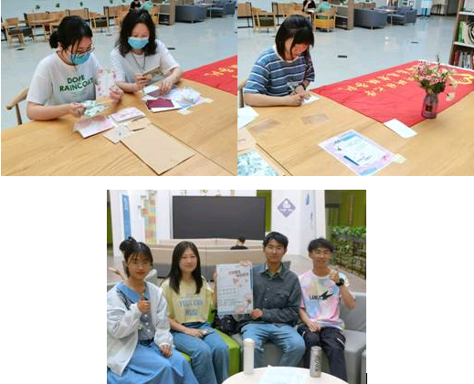 经过细心周到的提前安排,志愿者们已经完成场地布置、海报张贴、贺卡摆放等准备工作,络绎不绝的同学在大厅内驻足,咨询活动相关内容。同学们可以选择自己喜欢的贺卡、信纸与信封,写上自己对母亲的爱与祝福,最后由志愿者们帮助大家把祝福邮寄到家。