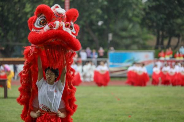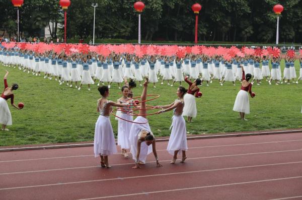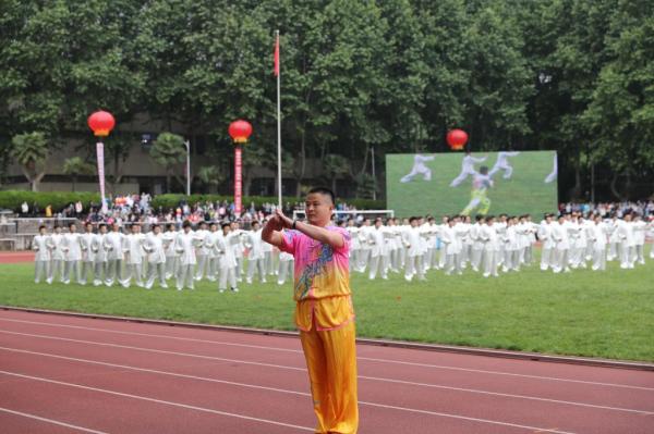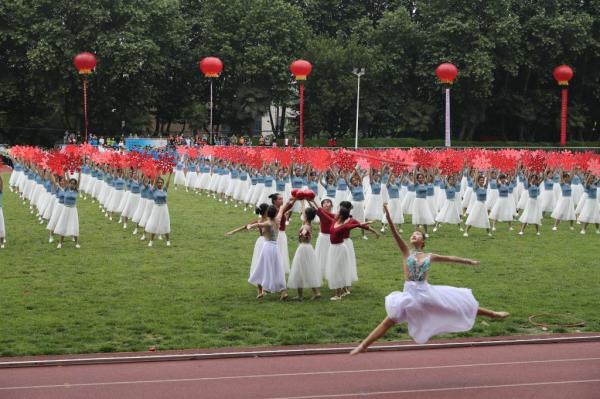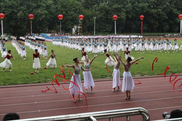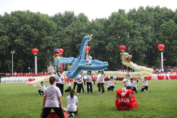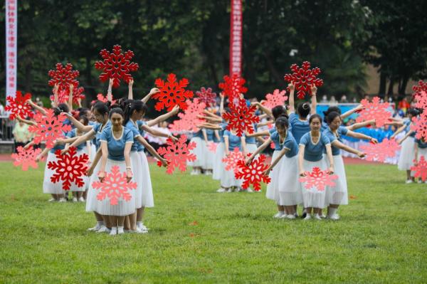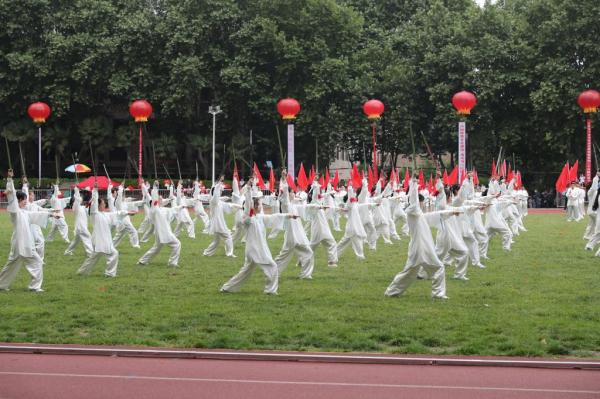 学子们衣袂翻飞,身若蛟龙,翩若游鸿,展现出青年人朝气蓬勃、团结协作、奋发向上的精神风貌。