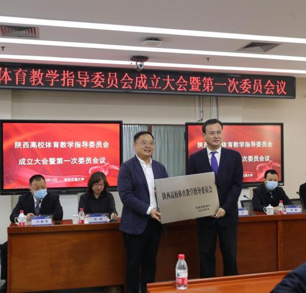 刘宝平向陕西高校体育教学指导委员会主任委员单位西安交通大学授牌。