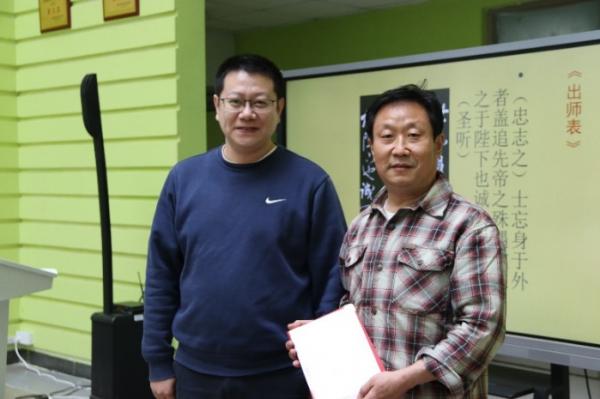萧迹老师讲解结束后,同学们认真思考并积极提问。在回答同学们的提问中,萧老师讲道:“无论书法、绘画还是作文,我能坚持下来都是因为热爱,我之所以给自己取笔名‘萧迹’,也是意在‘一路走来留下潇洒的痕迹’。”