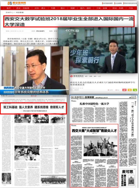 西安交通大学从体制机制改革、选拔体系完善、培养模式创新等方面开展实践的同时,深入实施导师制,重视教学质量监控。通过校内培育与校外聘邀相结合保障师资水平,实现大师引领,依托学校教育教学质量实时监测大数据平台,打造“四精课堂”。2009年至今试验班已毕业389人,继续深造率99%,部分毕业生赴哈佛大学、麻省理工学院、普林斯顿大学等知名学府继续深造,一批高水平成果陆续在Nature、Science等顶级期刊发表,优秀学子获“全国向上向善好青年——勤学上进好青年”“阿里巴巴全球数学竞赛金奖”等荣誉。拔尖创新人才培养改革不仅带动了全校教改创新实践,还得到教育界和社会的普遍认可。