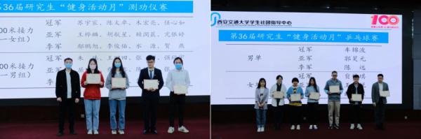 会上对上学期开展的第36届研究生“健身活动月”系列赛事和第37届研究生“中华之声”合唱比赛获奖单位、团队和个人予以表彰。