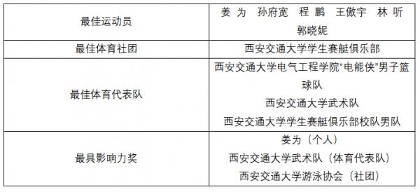 为打造健康积极的校园体育文化,培养有理想、有本领、有担当的时代新人,学校自4月起启动第五届“锐·动交大”体育人物评选活动。经过广泛宣传、积极动员、团史竞赛、材料评审、点赞投票等环节,最终评选出6个最佳运动员、3个最佳体育代表队和1个最佳体育社团。姜为、孙府宽等6名同学被评为最佳运动员,学生赛艇俱乐部被评为最佳体育社团,电气工程学院“电能侠”男子篮球队、武术队、学生赛艇俱乐部校队男队被评为最佳代表队。孙蔚为以上获奖团队进行颁奖。