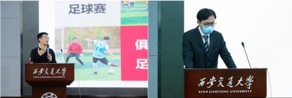 在项目答辩环节,展示了入选决赛的11件理论研究、调研报告和工作案例投稿作品。其中,跑者俱乐部的张彧铭同学基于特殊时期体育类社团的发展提出了方案:团队自主开发微信小程序平台建立更完善的社团组织架构及跑友交流平台,并积极探索疫情大背景下地区高校体育合作新样态;学生赛艇俱乐部临时团支部书记魏众玺同学展示了俱乐部将西迁精神融入赛艇文化,坚持“党建带团建,团建促党建”党团共建思想,持续发力、多点开花的社团风貌。来自励志书院数学专业的张晓昊同学作为棋牌协会负责人,展示了其将专业所学应用到棋类和牌类运动项目赛制研究的思路。强军先锋队将国防教育和体育健身相结合,开展系列主题赛事活动,全面提升先锋队队员的综合体质素质,在校园营造国防体育新风尚;电信学部足球队围绕足球项目,充分利用创新港的体育场地资源,结合研究生的特点开展院级系列体育赛事活动。