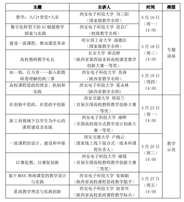 5月16日下午,西安电子科技大学2022年度新入职教师教学基本技能培训开幕式暨首场报告会举行。党委副书记杨银堂参加开幕式并致辞,本科生院常务副院长兼教务处处长苏涛介绍培训情况,国家级教学名师刘三阳教授、校级教学名师苗启广教授、信息化推进办公室副处级干部陈明应邀参会。本次活动由本科生院教学发展中心主任杨明磊主持。