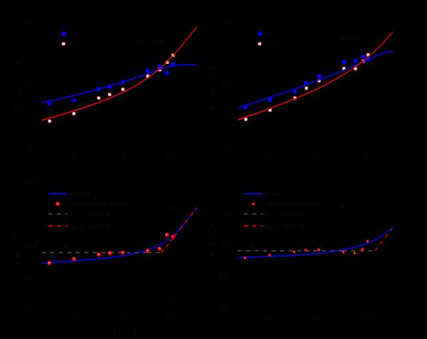 自相似多级结构模型与实验所得到的MCF10A和MCF7细胞的复模量和损耗角正切值结果对比