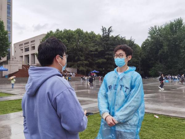 四大发明广场,跳大绳比赛刚刚落下帷幕。电气学院研究生在钱学森图书馆前留下了一张宝贵的合影。在刚刚的比赛中,他们跳绳总数超过了300个,超出预期,算是个小小的惊喜。大家穿着透明雨衣,笑得很开心,为这场比赛而自豪。