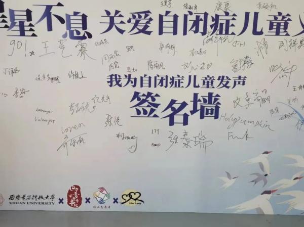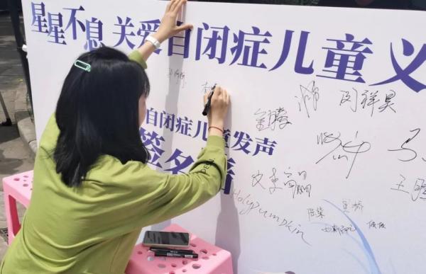义卖活动一开始,便吸引了来往同学们纷纷驻足,同学们不仅详细了解本次活动的背景、意义,欣赏各类产品,还在关爱自闭症儿童签名墙上签下了自己的名字、表达同学们对自闭症儿童的关爱。