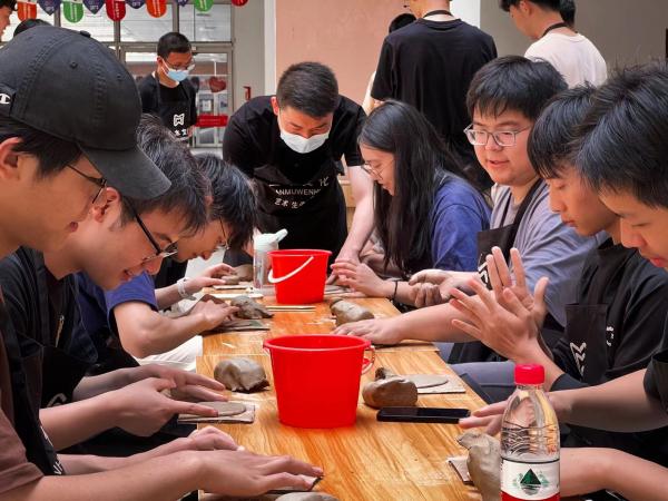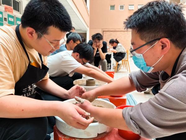 拉坯修心,做陶做人。为丰富学生课余生活,提高学生审美和实践创造能力,5月20日,海棠2号书院通识课程之陶艺拉坯体验在丁香14号楼大厅开展。书院邀请了三木艺术的两位老师为同学们讲授陶艺知识,让同学们在实践中感受陶艺的美和创造的快乐。